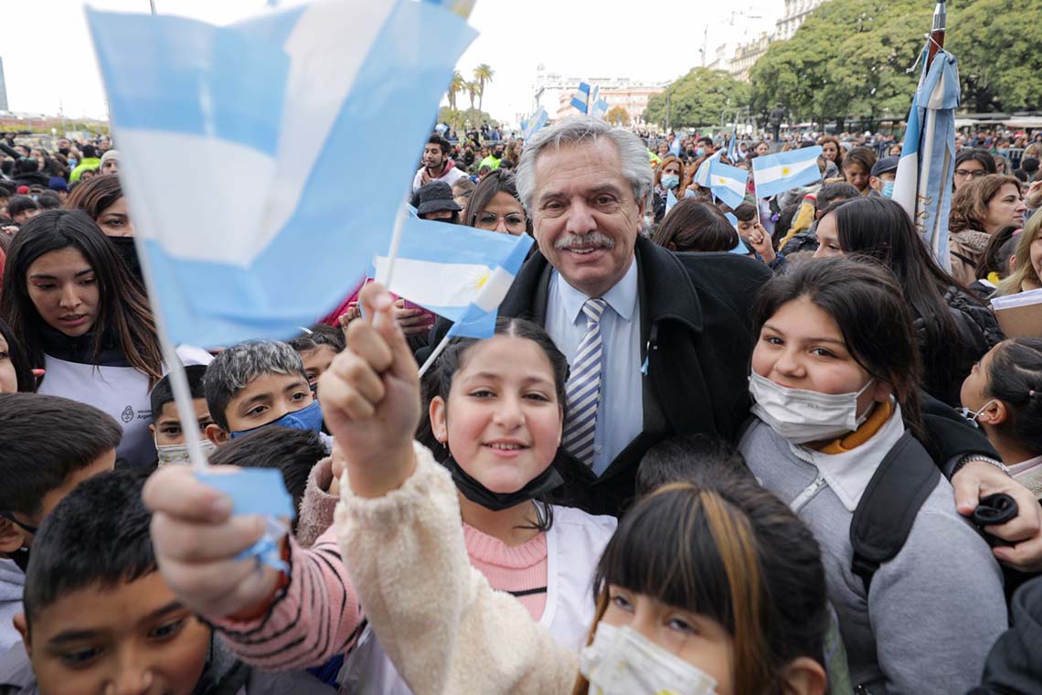 “Vamos a ponernos de pie una vez más, por ustedes, para que tengan de una vez y para siempre la patria que se merecen”, dijo Fernández al dirigirse a los alumnos que hicieron el juramento a la bandera en las escalinatas del CCK, y completó su mensaje: “Prepárense para un mañana mejor”.