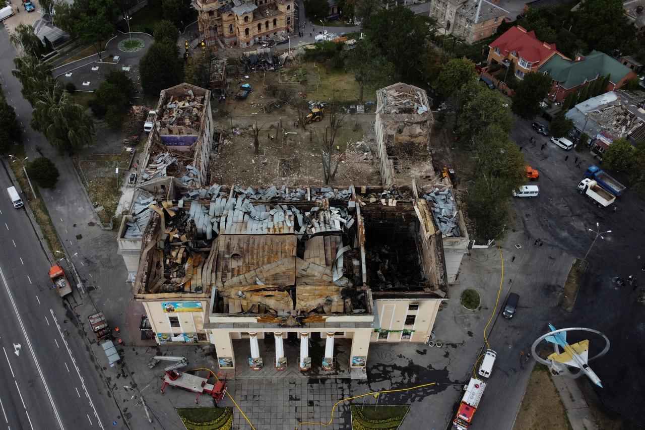 Foto: un edificio de la Cámara de Oficiales gravemente dañado por un ataque con misiles rusos en Vinnitsia, Ucrania, el 15 de julio de 2022. Stringer/Reuters.