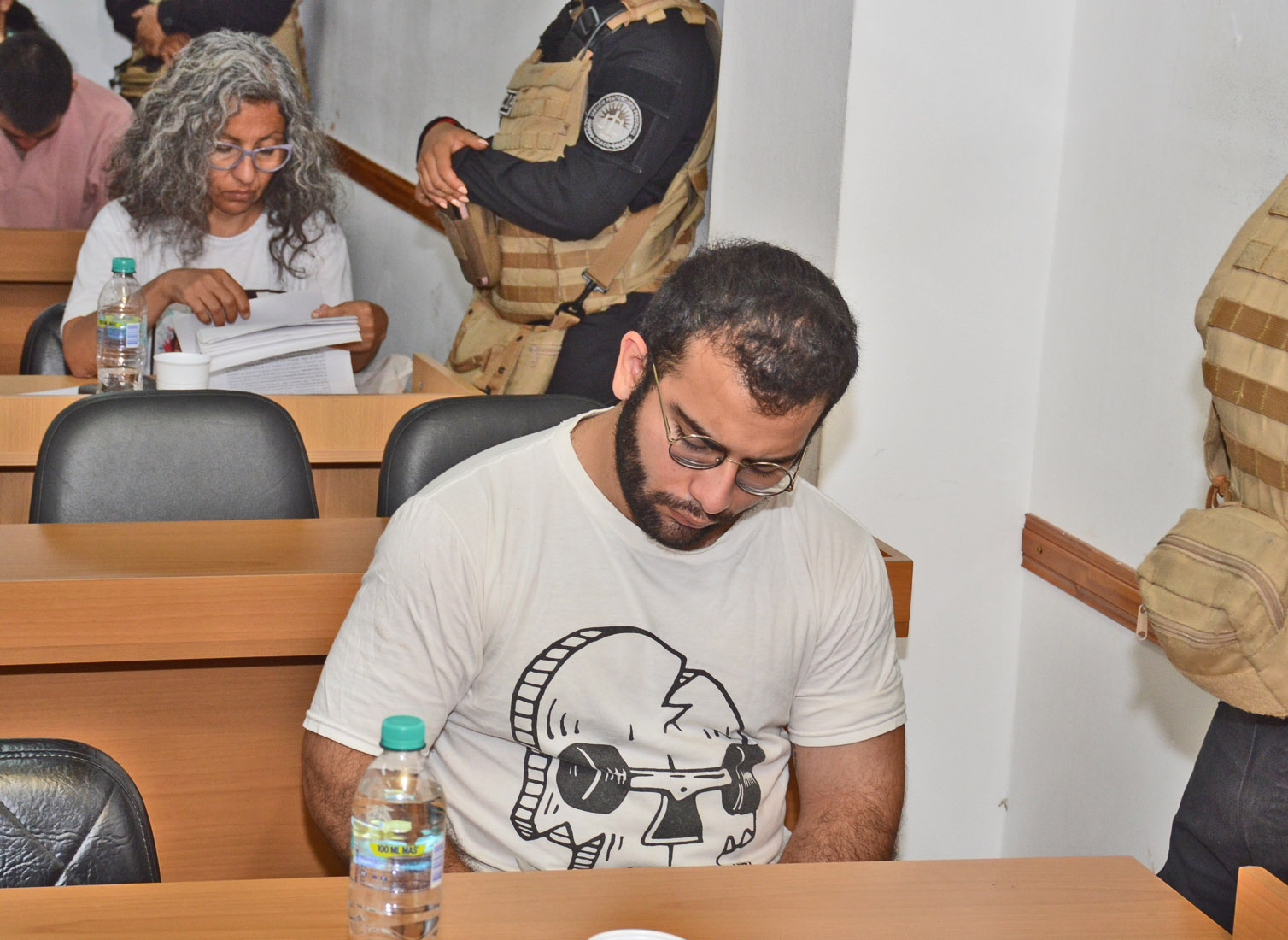 Al igual que en la audiencia previa estuvieron presentes cinco de los seis imputados declarados culpables por el jurado popular: César Sena, como autor del delito de homicidio doblemente agravado por el vínculo y por violencia de género; Acuña, González y Obregón.