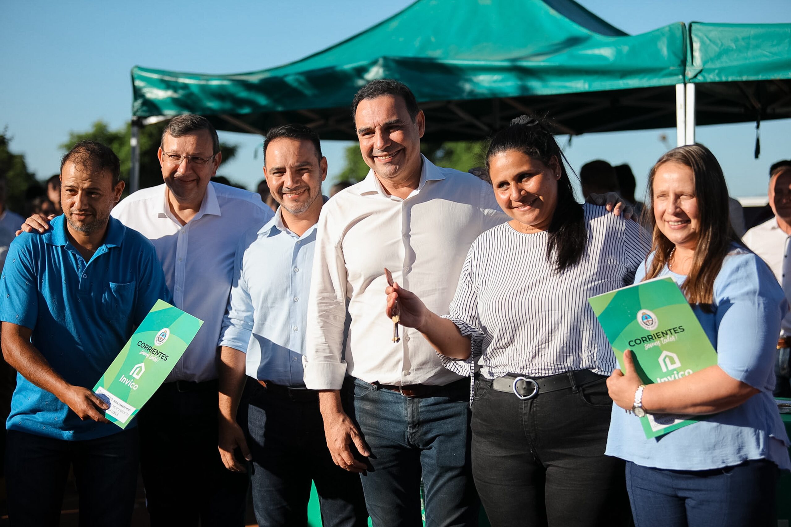 En la primera actividad de la jornada, el gobernador entregó las llaves de 20 viviendas construidas a través del Programa Esfuerzo Propio y Ayuda Mutua (EPAM) del Instituto de Vivienda de Corrientes (Invico), en el barrio 29 de Mayo.