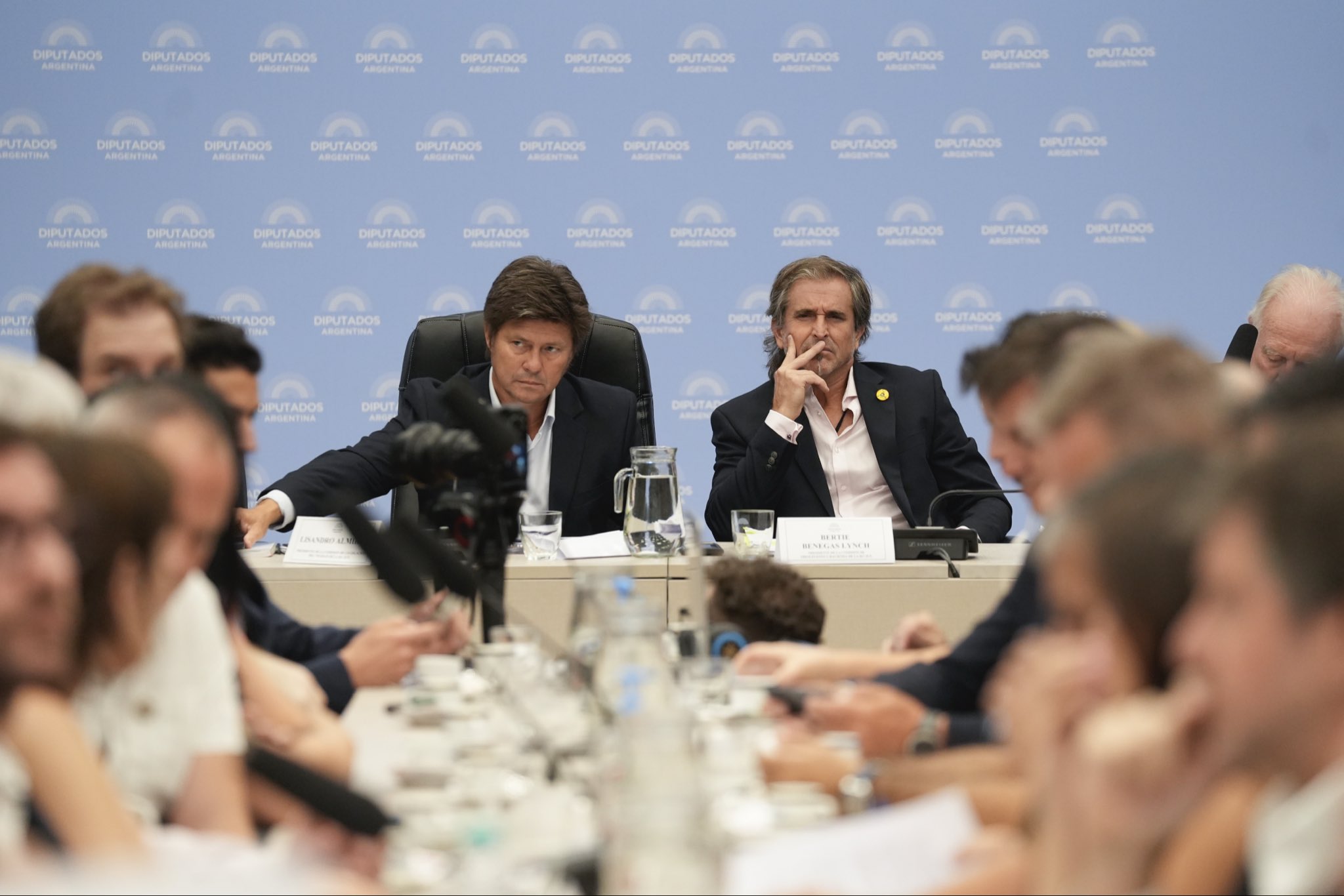 Foto: los diputados Lisandro Almirón y Bertie Benegas Lynch, en el plenario de comisiones en el que el mileísmo consiguió las firmas para el dictamen de mayoría. Diputados Argentina.